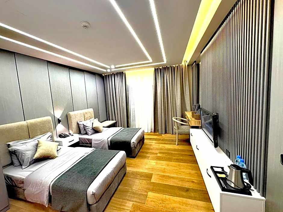 This triple room's standout feature is the hot tub. Offering free toiletries and bathrobes, this triple room includes a private bathroom with a walk-in shower, a bath and a bidet. A kitchenette fitted with a refrigerator, a microwave and a tea and coffee maker is available for cooking and storing food. The spacious air-conditioned triple room offers a flat-screen TV with cable channels, a private entrance, soundproof walls, a mini-bar as well as city views. The unit has 3 beds.